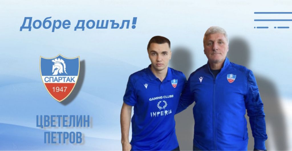112 Спартак си върна юноша на клуба. Цветелин Петров отново е футболист на „гладиаторите“. Петров е юноша на Спартак, играл е за Сокол Марково и Саяна. Халфът е роден през 2003 г. и е 4- тото ново попълнение. Към отбора вече се присъединиха Сами Мехмедов, Пламен Цончев и Теодор Митрев. Може да ви хареса също Балканиада по шах през първия януарски уикенд в Пловдив Баскетболният Локомотив Пловдив изригна за условията в зала Младост Шалке 04 преговаря за бивш играч на Ботев Спартак Варна подкрепи призива на Лудогорец и Ботев Пд