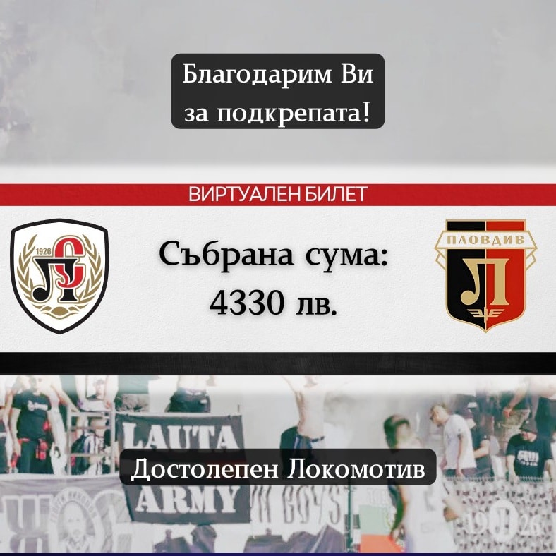 Фондация „100 години Локомотив Пловдив“ събра 4330 лева от виртуални билети. Ето какво съобщи: