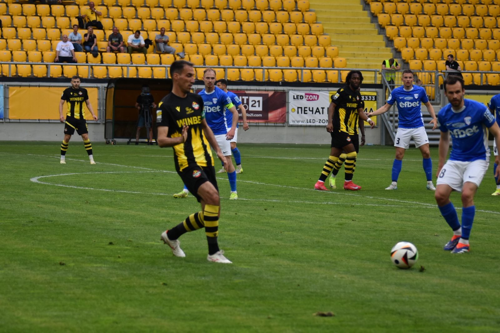 279 Изпълнителният директор на Спартак Варна Иван Кирилов изрази недоволство от съдията на мача с Ботев в Пловдив. „Соколите“ изгубиха с 2:3 и вече изостават с по пет точки от ЦСКА и „канарчетата“, които са на пето и шесто място. „Цяло второ полувреме Ботев на знаеха къде се намират, а след като поведоха откровено бавеха играта. И при толкова извършени смени накрая реферът даде само три минути продължение. От него обаче се играха само 30-40 секунди“, заяви Иван Кирилов. „Аз съм бил съдия и затова вземам отношение относно този тънък момент. За мен това е подигравка с футбола. Иначе нашите момчета изиграха силно второ полувреме, през което надиграха съперника“, добави той. Може да ви хареса също Ето го второто ново попълнение на Ботев Ботев намери заместник на Андрей Йорданов Заплашвали Ботев за Око-Флекс Състоянието на Любо Пенев се подобрява!