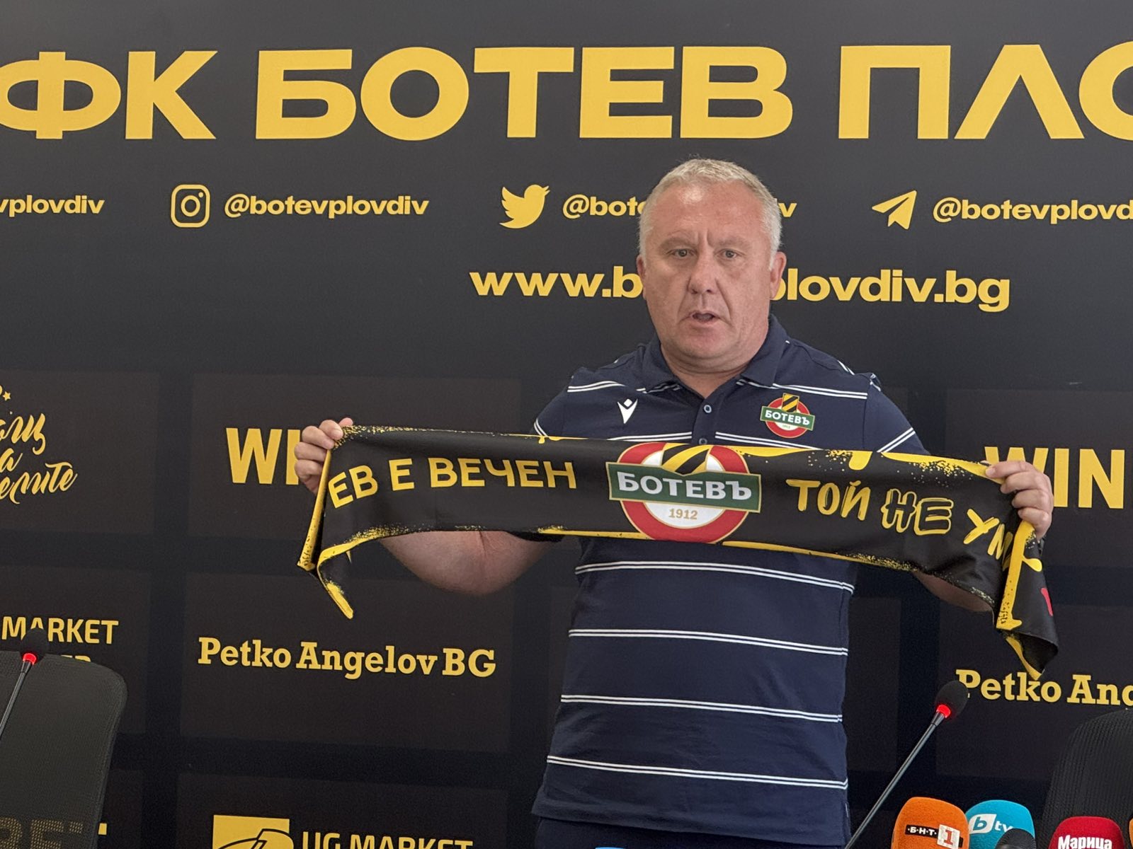 439 Ботев е клуб, който е изключителна чест и отговарност на ръководиш. Аз съм задължен да помогна в този момент. За мен е чест да съм треньор на този велик клуб. В моят съзнателен живот са минали 11 години за този клуб. Това каза Николай Киров на пресконференция днес. „Не е коректно да коментираме имена за селекция. Борим се на пазара с поне 1500 отбора. Плащането кам ФИФА е направено и чакаме да се вдигне забраната за картотекиране. Подготовката ще е в Пловдив и нямаме времето да ходим на лагер. Имаме проблеми с настоящите играчи и за това не можем да ходим никъде другаде. Едни правят компромис други не. На всички е платено“, коментира Белия. „Коментирана е темата с Тодор Неделев и го чакам в Ботев. Аз се съобразявам с началниците. Настроението е добро защото всичко е изплатено. Запознавам се тепърва с юношите на клуба, но жалкото е че много водещи играчи в отборите и са излезнали от нашата школа. Все още не мога да коментирам за Иван Цветанов. Екипът, с който работя е оптимален вариант“, каза още Белия. „Направили сме сериозен план за мача с ЦСКА и вярвам на нашите превърженици, че ще ни помогнат много, просто да идват на мачове и да ни подкрепят“, коментира новият треньор на Ботев. „От загубения финал досега е нямало вариант да се върна в Ботев“, завърши Белия. Може да ви хареса също Билетите за „Мача на Надеждата“ вече са в продажба, част от средствата ще помогнат на Любо Пенев и Петър Хубчев Миха Търдан получи приза си за играч №1 на 27-мия кръг Ето как се представиха националите на Ботев Спортът и мачовете по телевизията днес