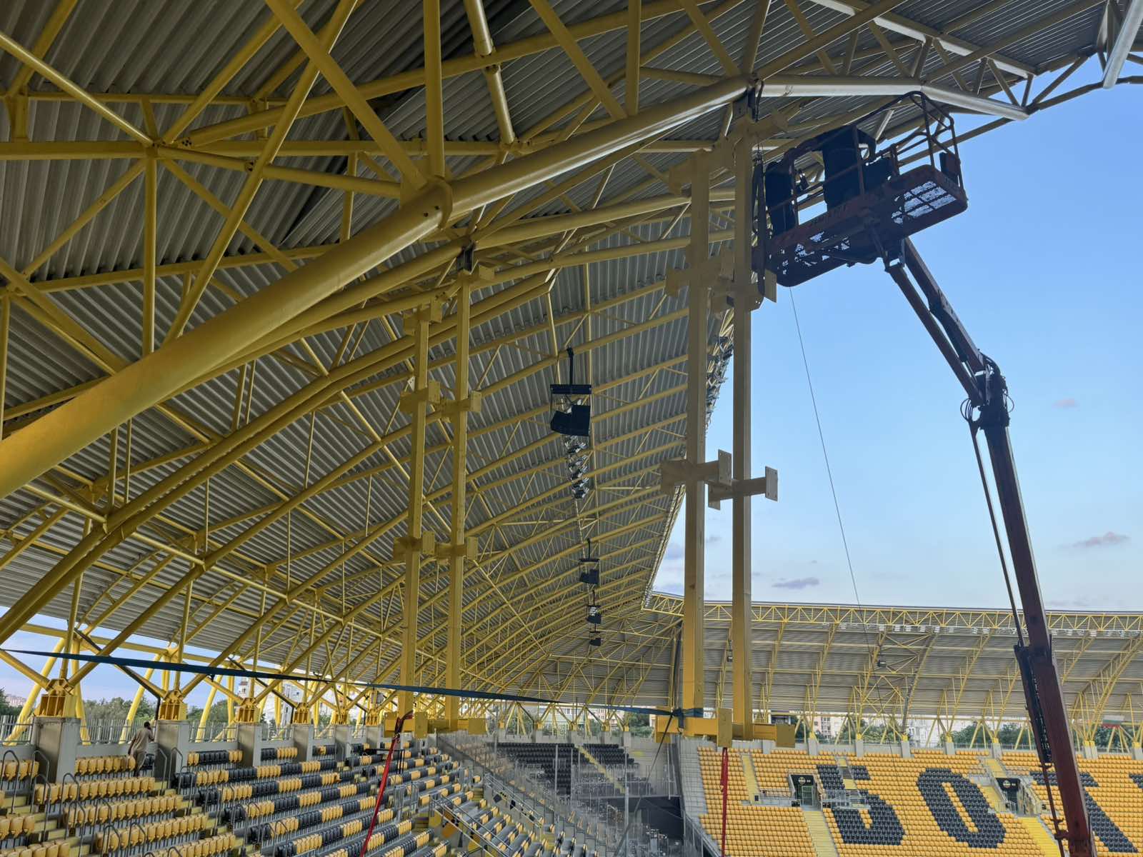 586 Денонощно ще се работи на стадион „Христо Ботев“ до мача с ЦСКА. Днес започна монтирането на конструкциите за новите две табла, които ще бъдат на ъглите между Централната и Северната трибуни и между Изток и Юг. Най- модерният стадион ще разполага с електронни табла от най- висок клас. Феновете ще се радват и на други интересни придобивки на „Колежа“, които ще са готови за първия мач от новия сезон. Може да ви хареса също ФИФА продава най-скъпия билет в историята Величков към феновете на Локо: Имаме нужда от вашата подкрепа! От тук до края всеки един мач ще бъде като финал за нас! Ръководството на Локомотив поиска 1000 билета за дербито с Ботев Спортът по телевизията днес