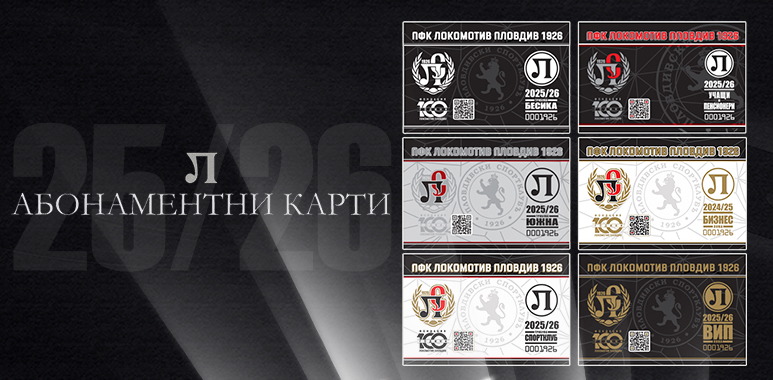 189 ПФК Локомотив Пловдив пуска в продажба от понеделник (07.07) абонаментните карти за сезон 2025/2026, както и новите официални тениски. Феновете на тима ще могат да си ги закупят както на място от „Лаута“ (дясната каса до бариерата на спортния комплекс), така и от онлайн магазина на клуба. Абонаментната карта дава право на достъп до всички официални домакински срещи (редовен сезон, плейофна фаза и Купа България) на Локомотив през актуалния сезон 2025/2026! Цени на абонаментните карти: Трибуна „Бесика“ – 250 лева – достъп до новата и модерна Трибуна “Бесика” Трибуна „Бесика“ – Ученици (до 18 г.) / Пенсионери – 150 лева – продава се само на място в спортен комплекс „Локомотив“ – достъп до новата и модерна Трибуна “Бесика” – при закупуването на този вид абонаментна карта трябва да се представят необходимите документи, които доказват, че лицето е учащ/пенсионер. – За лица, които притежават ТЕЛК с/над 80%, картата е с допълнителна отстъпка и е с цена 120 лева. Необходимо е предоставяне на документ, удостоверяващ ТЕЛК решението. Южна трибуна – 250 лева – достъп до новата и модерна Южна трибуна Южна трибуна – Ученици (до 18 г.) / Пенсионери – 150 лева – продава се само на място в спортен комплекс „Локомотив“ – достъп до новата и модерна Южна трибуна – при закупуването на този вид абонаментна карта трябва да се представят необходимите документи, които доказват, че лицето е учащ/пенсионер. – За лица, които притежават ТЕЛК с/над 80%, картата е с допълнителна отстъпка и е с цена 120 лева. Необходимо е предоставяне на документ, удостоверяващ ТЕЛК решението. Трибуна „Спортклуб“ – 360 лева – достъп до новата и модерна трибуна „Спортклуб“ Бизнес ложа – 700 лева – достъп до бизнес местата на трибуна „Спортклуб“ (ВХОД 1) – право на паркомясто в спортен комплекс „Локомотив“ само за дните, в които се провеждат домакински мачове – подарък – официалната тениска на Локомотив за сезон 2025/2026 ВИП ложа – 1200 лева – достъп до трибуна „Спортклуб“ и прилежащата към нея ВИП зона (ВХОД 1 / ВИП 1) – право на паркомясто на вип паркинга в спортен комплекс „Локомотив“ само за дните, в които се провеждат домакински мачове + осигурен кетъринг във вип залата. – подарък – официалната тениска на Локомотив за сезон 2025/2026 Цените на билетите за домакинските двубои ще бъдат както следва*: Трибуна “Бесика” – 20 лева Детски (деца от 7г. до 14г.) / Пенсионерски (хора над 65 г.) за трибуна “Бесика” – 10 лева Южна трибуна – 20 лева Детски (деца от 7г. до 14г.) / Пенсионерски (хора над 65 г.) за Южна трибуна – 10 лева Трибуна „Спортклуб“ – 30 лева Детски (деца от 7г. до 14г.) / Пенсионерски (хора над 65 г.) за трибуна „Спортклуб“ – 15 лева *Локомотив си запазва правото да променя цените на пропуските. Деца до 7 г. (навършени) ще влизат безплатно, но трябва да са с ПРИДРУЖИТЕЛ на мачовете и коректно попълнена ДЕКЛАРАЦИЯ. В продажба от понеделник ще има и специални промопакети – новата официална тениска (редовна цена 109 лева) + абонаментна карта! Тениска + карта за трибуна „Бесика“ – 300 лева Тениска + карта за Южна трибуна – 300 лева Тениска + карта за трибуна „Спортклуб“ – 410 лева Стандартно работно време: Официален магазин (дясната каса до бариерата на спортния комплекс): понеделник – петък: от 9:30 часа до 17:30 часа събота и неделя – почивни дни Може да ви хареса също Билетите за „Мача на Надеждата“ вече са в продажба, част от ср