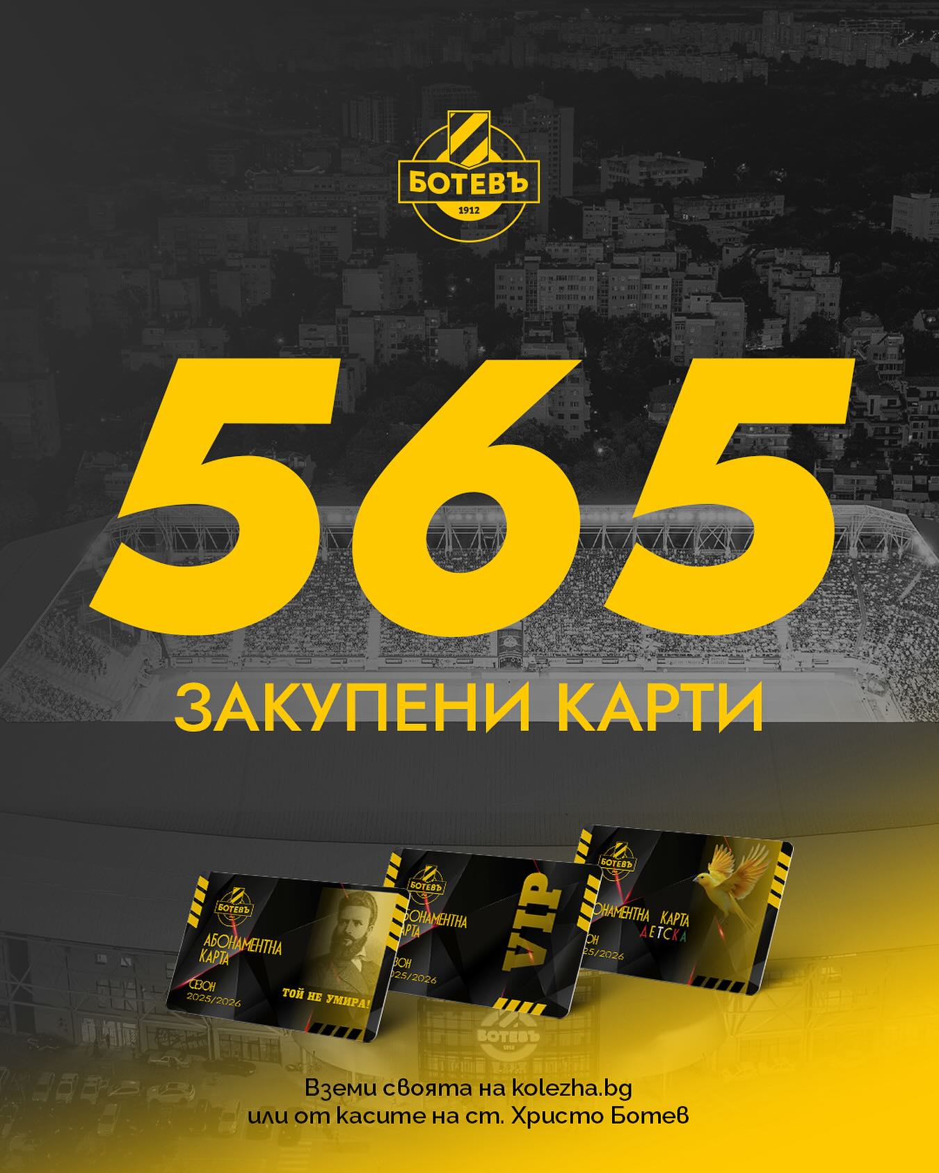 321 Интересът към абонаментните карти за новия сезон продължава да расте! Броят на закупените карти за стадион “Христо Ботев” вече е 565. От днешния ден вече е налична опция и за онлайн закупуване на карти на kolezha.bg. Изключение има единствено за подновяване на абонамента, който се извършва на касата на стадиона. Благодарим за сериозния интерес! В утрешния ден очаквайте още новини около входящите трансфери в клуба- написаха в официалната страница на клуба. Може да ви хареса също ФИФА продава най-скъпия билет в историята Величков към феновете на Локо: Имаме нужда от вашата подкрепа! От тук до края всеки един мач ще бъде като финал за нас! Ръководството на Локомотив поиска 1000 билета за дербито с Ботев Спортът по телевизията днес