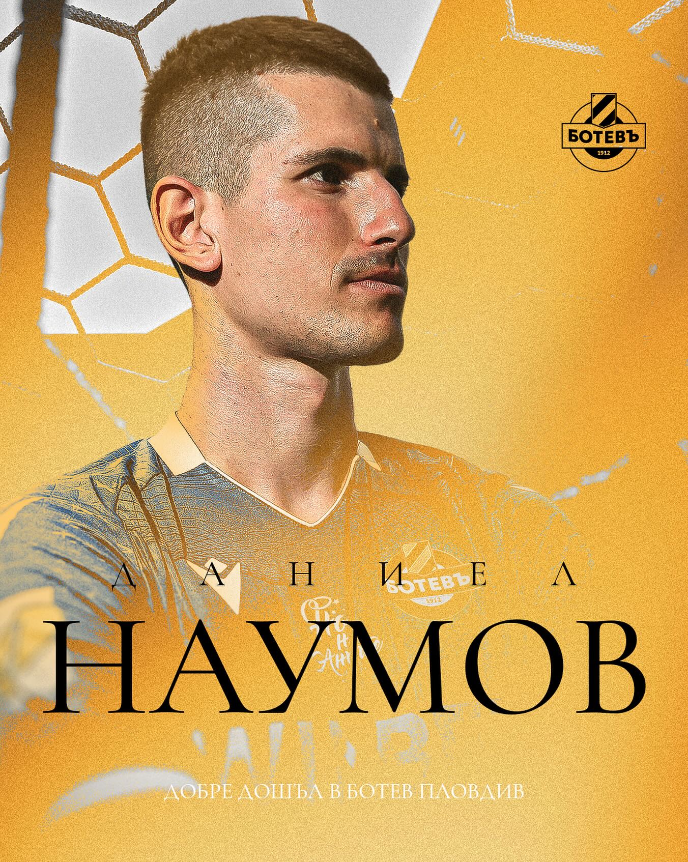 322 Ботев официално обяви трансфера на Даниел Наумов. Договорът на вратаря с гръцкия клуб е за срок от две години. Наумов разтрогна гръцкия ОФИ Крит и пристигна в Пловдив със свободен трансфер. У нас Наумов е играл за отборите на Верея, Лудогорец и ЦСКА 1948. За националния отбор на България има 10 срещи. Може да ви хареса също Мачовете по телевизията Внезапно почина пловдивски спортен деятел – баща на наша звезда Спортна ТВ неделя Спартак (Пловдив) надви СФК Раковски