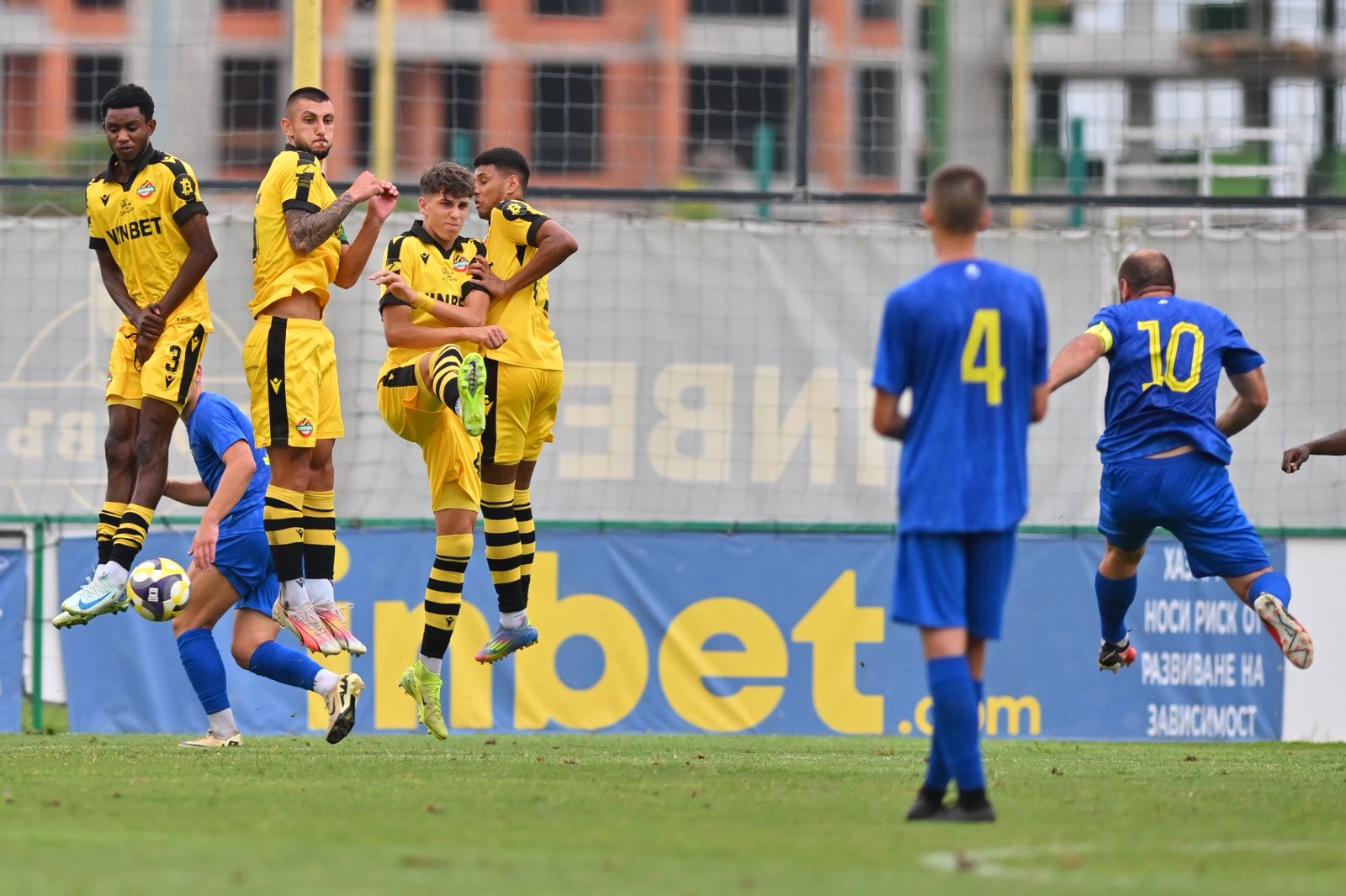 436 Ботев победи Мариц С 1:0 в контролна среща, играна на базата на жълто- черните „Никола Щерев – Старика“. Николай Киров използва играчи, който не играха или влезнаха като резерви с Черно море. Повече игрови минути записака Енок и Тайлсон. Единственото попадение падна в 81′, когато Ситев центрира от ляво, а Самуил Цонов с глава вкара топката в мрежата. Жълто- черните продължават с подготовката си за мача с Арда в понеделник от 21:15 часа на стадион Христо Ботев. Може да ви хареса също Жълто-черното семейство зарадва стотици в кампанията Жълто-черен Великден за Пловдив БФС одруса здраво Ботев и Локо Димитър Бербатов ще представи анализ на анкетно проучване пред спортните федерации МВР: Открихме 11 факли с дистанционен детонатор, 6 са арестувани след боя между фенове