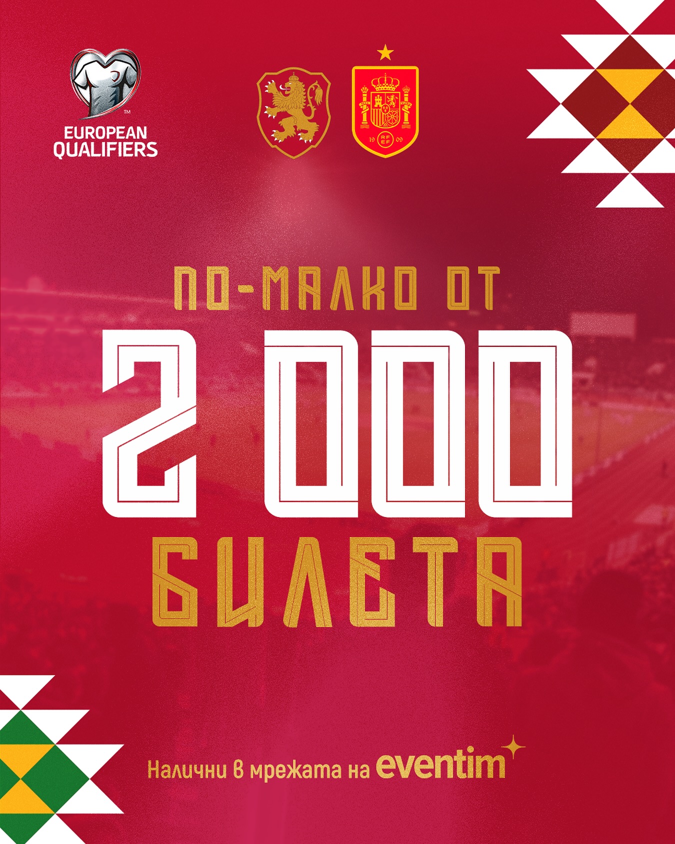 293 Над 37 000 фенове вече закупиха своите билети за мача България – Испания на 4-и септември! Остават по-малко от 2 000 билета в системата на Eventim Можеш да вземеш своя пропуск още сега и да станеш част от най-дългоочакваното футболно събитие на годината! А то ще започне с уникална хореография по трибуните на Националния стадион “Васил Левски”!- написаха в официалната страница на националния отбор. Може да ви хареса също Кабаков пред второ сериозно наказание в рамките на сезона Ботев Пловдив е много повече от клуб – Ботев Пловдив е семейство! Още три големи имена се присъединяват към Мача на надеждата Сняг изненада шофьорите на прохода Шипка