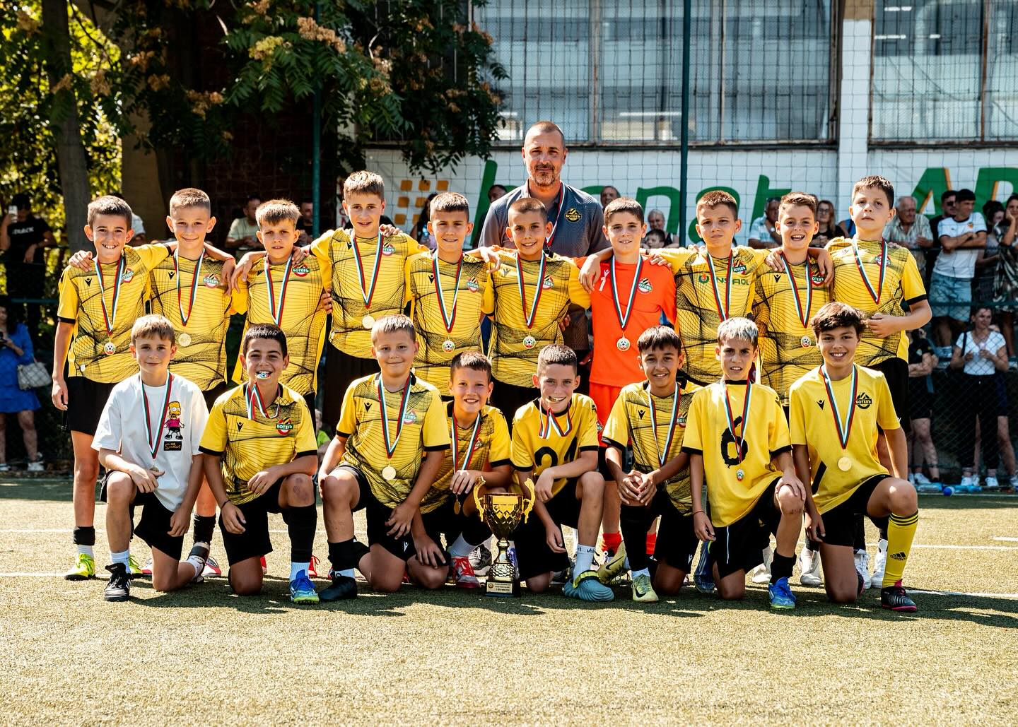 319 Децата на Ботев Пловдив от набор 2014 грабнаха златото на турнира Bionat Plovdiv Cup 2015. В груповата фаза момчетата на Стоян Ангелов записаха три победи – с 9:1 над Спартак, с 1:0 над Черно море и с 2:1 над Шипка старс. На четвъртфиналите “канарчетата” се наложиха с 2:1 над Кронос, а в полуфиналната фаза взеха драматичен успех над Левски след изпълнение на дузпи. В големия финал пловдивчани триумфираха с 3:2 над Славия, след като изоставаха в резултата с 0:2. Може да ви хареса също Спортна ТВ събота Локо покори Пловдив, отдалечи Академик от плейофите Марица е на финал! Шампионките елиминираха ЦСКА и ще играят за титлата в НВЛ Никола Попов свири на Ботев, Великов на Локо