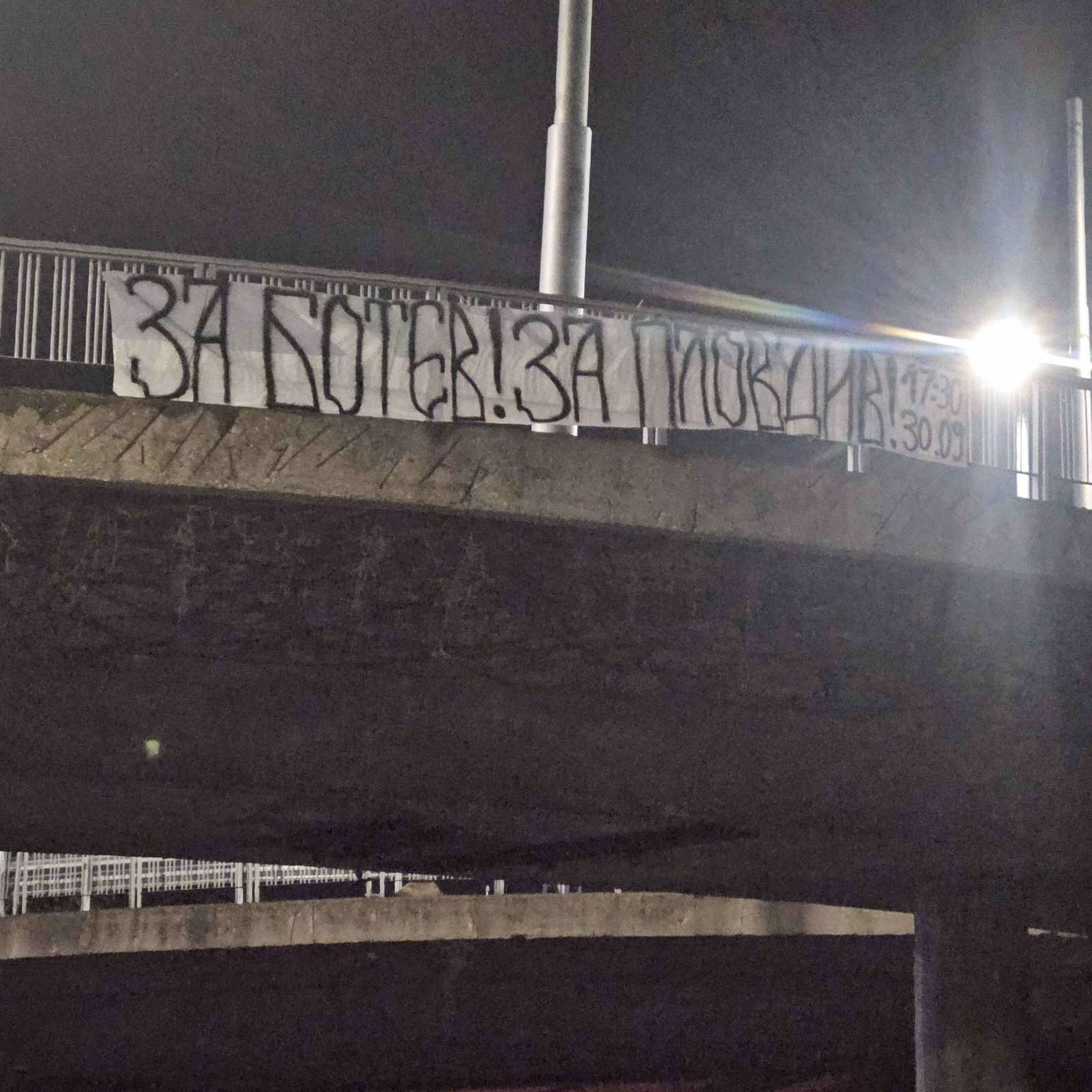 242 Пловдив осъмна с плакати в подкрепа на отбора на Ботев преди мача с Левски. На много от мостовете в града има транспаранти „Подкрепяй Ботев или умри! 30.09.17:30“, „За Ботев! За Пловдив!“, „Колежа 17:30“, „Всички на Колежа!“ „Ботев Пловдив Since 1912 Не помня началото, не съм бил роден Няма да помня и края, Ботев е вечен!“- написаха от Клуб на привържениците на Ботев Пловдив. Може да ви хареса също Каталин Иту: Заедно се борим в защита и атака. Това е ключът при нас Косич: Перфектен мач за Локомотив, но нищо не е решено Локо размаза Арда и няма как да бъде спрян за финала за Купата Специалната хореография от феновете на Локо Пд за битката с Арда