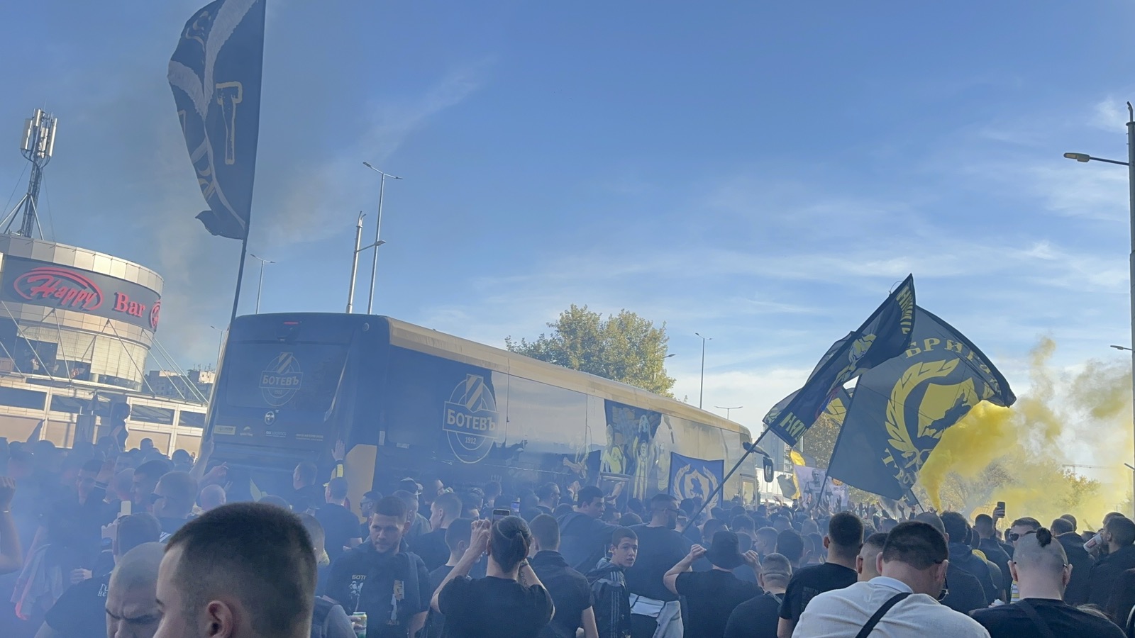 89 С мощно шествие бултрасите поеха към Лаута, където от 14:45 часа Ботев гостува на Локомотив в дербито на Пловдив. Жълто- черните се събраха пред своя дом стадион „Христо Ботев“ и с димки и факли, пеейки любимите песни, тръгнаха за мача с градския съперник. По пътя те посрещнаха автобуса с футболистите и ги надъхаха допълнително за победа над Локо. https://plovdivnews.bg/wp-content/uploads/2025/11/6estv-botev3.mp4 https://plovdivnews.bg/wp-content/uploads/2025/11/6estv-bot5.mp4 https://plovdivnews.bg/wp-content/uploads/2025/11/6estv-bot2.mp4 Може да ви хареса също БК Локомотив Пловдив отстъпи на БК Ботев 2012 Враца Около 600 футболисти в Турция ще бъдат разпитани за нелегалните залози, използвани са и български нелегални сайтове Мач след мач по ТВ днес Спартак (Пловдив) обърна розите