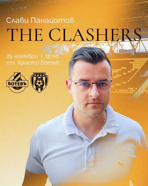 26 Един от най-известните пловдивчани ще бъде специален гост на съботния мач с Черно море. Слави Панайотов, по-известен като The Clashers, ще посети сблъсъка на “жълто-черните” с “моряците”. Това съобщиха от ПФК Ботев. Най-старият футболен клуб и Слави The Clashers са подготвили изненада за всички пловдивчани, свързана с Коледен базар “Колежа”. Може да ви хареса също Кметът: Стадион „Локомотив“ е до трета плоча. В следващите седмици очакваме четвърта и пета Спортът мачовете по телевизията днес Расте интересът от чужбина към крилото на Ботев Армстронг Око-Флекс Марица взе гейм на полския шампион на старта на групите в Шампионската лига