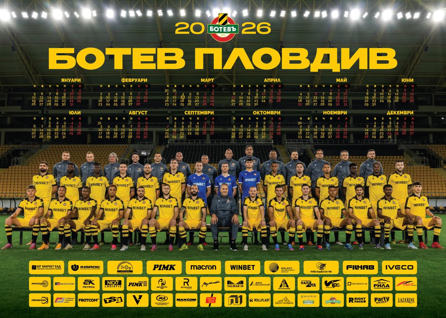 350 В продажба от днес е календарът на Ботев Пловдив за 2026 година, съибщиха от клуба. Постера можете да закупите от клубния фен магазин на цена 5 лева. Може да ви хареса също Косич след 1:1 с Лудогорец: Изпуснахме две точки, но всяка е ценна Мартин Русков: Разочаровани сме, играхме за победа Локо (Пд) измъкна точка на Лудогорец Насрочиха още два мача на Ботев и Локо