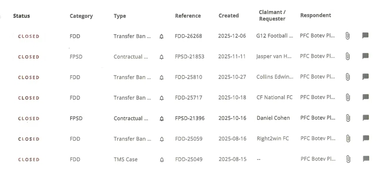 466ПФК Ботев Пловдив вече има право да осъществява входящи трансфери, след като всички санкции по дела във ФИФА бяха отменени.На 23 декември задълженията в размер на 1 482 484.80 лв. бяха изплатени, а в днешния ден световната футболна централа официално премахна трансферните забрани на „канарчетата“.По този начин клубът дава пълна възможност на старши треньора Димитър Димитров-Херо да осъществи желаната от него зимна селекция, която да спомогне за подобряване резултатите на отбора.Очакваме Ви на „Колежа“ за Битката за Тракия в началото на февруари! Само заедно можем да върнем любимия клуб там, където му е мястото- написаха „жълто- черните“. Може да ви хареса също Локо продължава с тежките тренировки Локомотив се изправя срещу Етър в първата си контрола Георги Николов: Сам платих 50 000 евро за лечението в Барселона, предишното ръководство на Ботев не ми дадоха и медала за Купата ПФК Ботев Пловдив: Не признаваме плащането на ПФК Левски София за валидно активиране на откупната клауза на Око-Флекс!