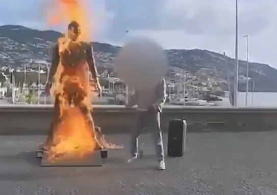 118 Неизвестен мъж подпали статуя на Кристиано Роналдо в Мадейра. Инцидентът е станал близо до музея на португалския футболист във Фуншал, пише Тема спорт. Потребител в социалните мрежи с псевдоним zaino.tcc.filipe публикува видеоклип, в който залива статуята със запалима течност, подпалва я и след това танцува на рап музика. „Последното Божие предупреждение“, написа младият мъж под видеото. Португалската полиция за обществена сигурност в Мадейра съобщи, че мъжът е извършвал подобни престъпления преди това във Фуншал. В момента се извършват усилия за идентифицирането му. Според португалското законодателство „унищожаването или повреждането на обществена собственост се класифицира като престъпление с утежнена вреда, както е предвидено в член 213 от Наказателния кодекс“ и може да доведе до наказания до 5 години за по-често срещани случаи, и лишаване от свобода от 2 до 8 години за по-сериозни случаи. Може да ви хареса също Много футбол по телевизията в неделния ден Спортът по ТВ днес Грандиозна церемония по закриването на Олимпиадата – България отбелязва втория си най-успешен зимен старт Лора Христова и Милена Тодорова с добро представяне в масовия старт на 12,5 км на Зимните игри в Милано-Кортина