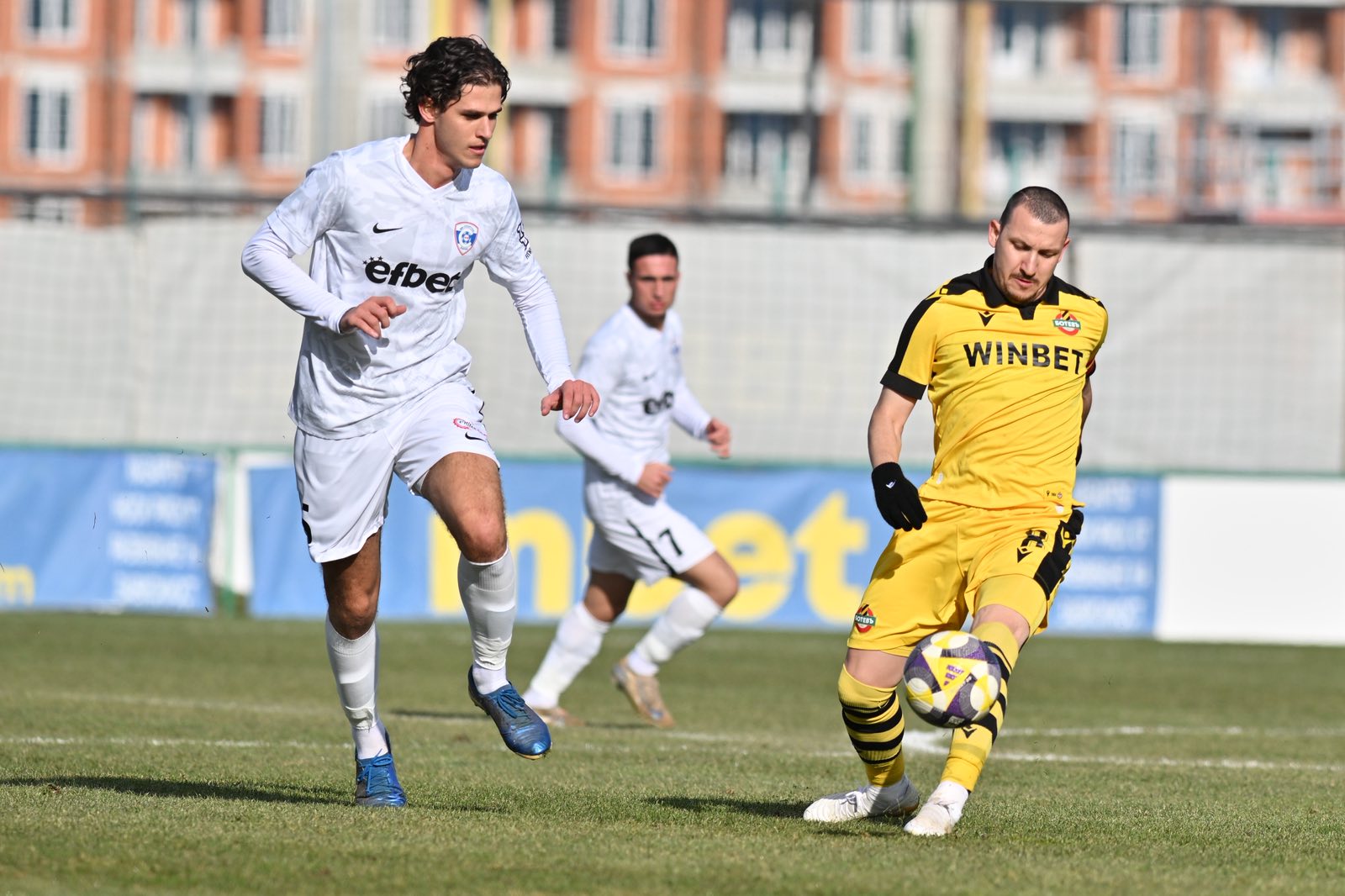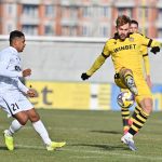 587 Ботев постигна минимална победа с 1:0 над Спартак в контролна среща. Още в 9-ата минута Алекса Мараш опита удар с глава, но топката премина покрай вратата. В 28-ата минута „жълто-черните“ организираха отлична атака, при която Ивайло Видев изведе Тандано сам срещу вратаря, но от близка дистанция нападателят стреля над напречната греда. Отговорът на Спартак не закъсня. Деян Лозев центрира по земя от десния фланг, а в наказателното поле Шанде се размина с топката и пропусна отлична възможност да порази вратата на Даниел Наумов. Секунди преди почивката „канарчетата“ стигнаха до единствения гол в срещата. Домакините организираха бърза контраатака, която капитанът Тодор Неделев завърши по майсторски начин – халфът преодоля защитник и с техничен удар не остави шансове на Максим Ковальов. В 49-ата минута Никола Илиев бе близо до второ попадение, но мощният му изстрел от границата на наказателното поле срещна горната греда. Малко преди края на мача влезлият на смяна Славков под рамката на вратата на Ботев спаси блестящо удар на Шанде. През първото полувреме контузия получи Енок Куатенг и напусна терена, а през втората част на мача се наложи влизането на линейка след като Деян Лозев от Спартак, който играеше с маска, се сблъска с Тиндано и получи удар в лицето. Може да ви хареса също Лора Христова и Милена Тодорова с добро представяне в масовия старт на 12,5 км на Зимните игри в Милано-Кортина Пловдивчанин с европейски рекорд в клека и златни медали за страната от шампионата във Финландия Много спорт и мачове по ТВ днес Каталин Иту все по- близо до Левски