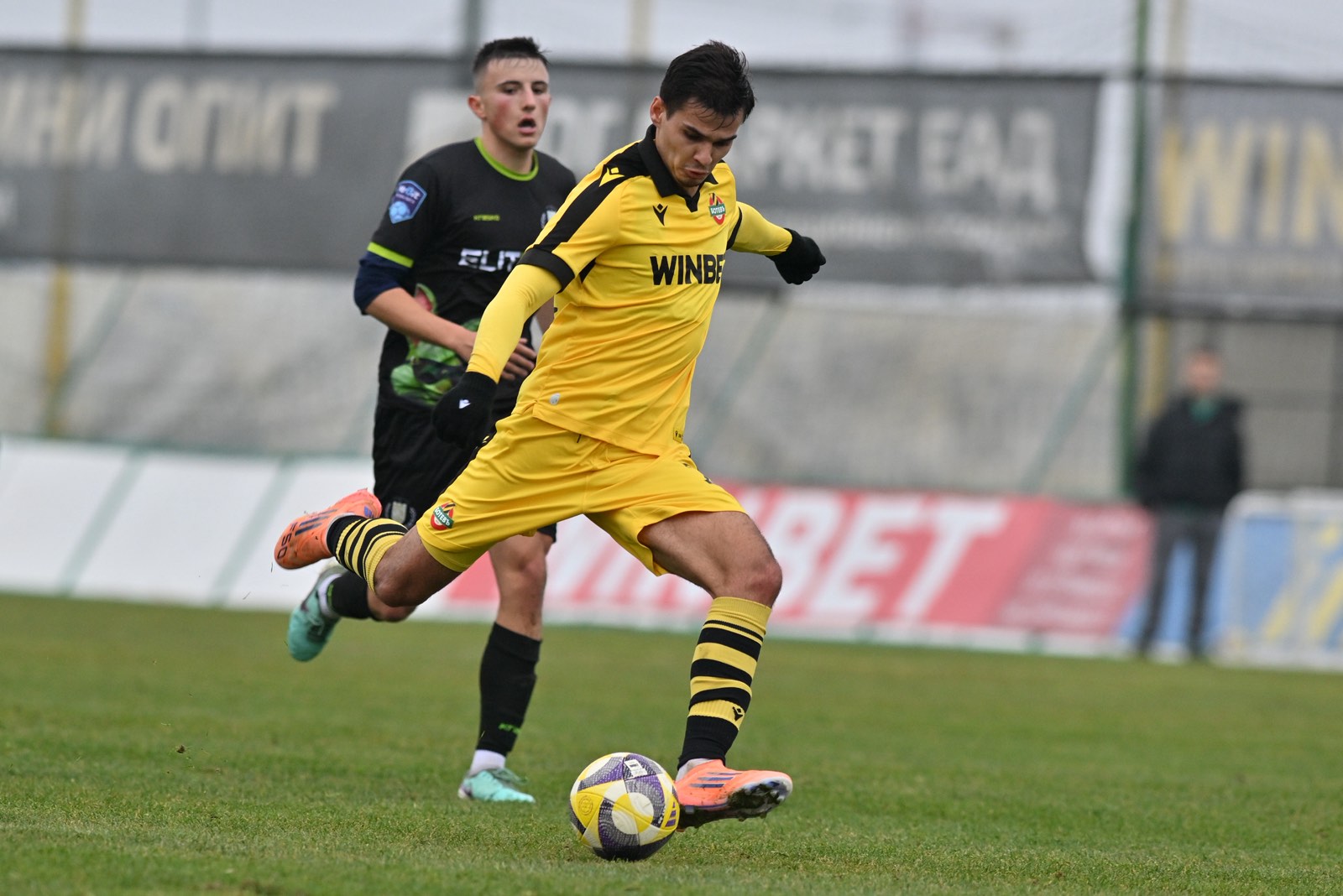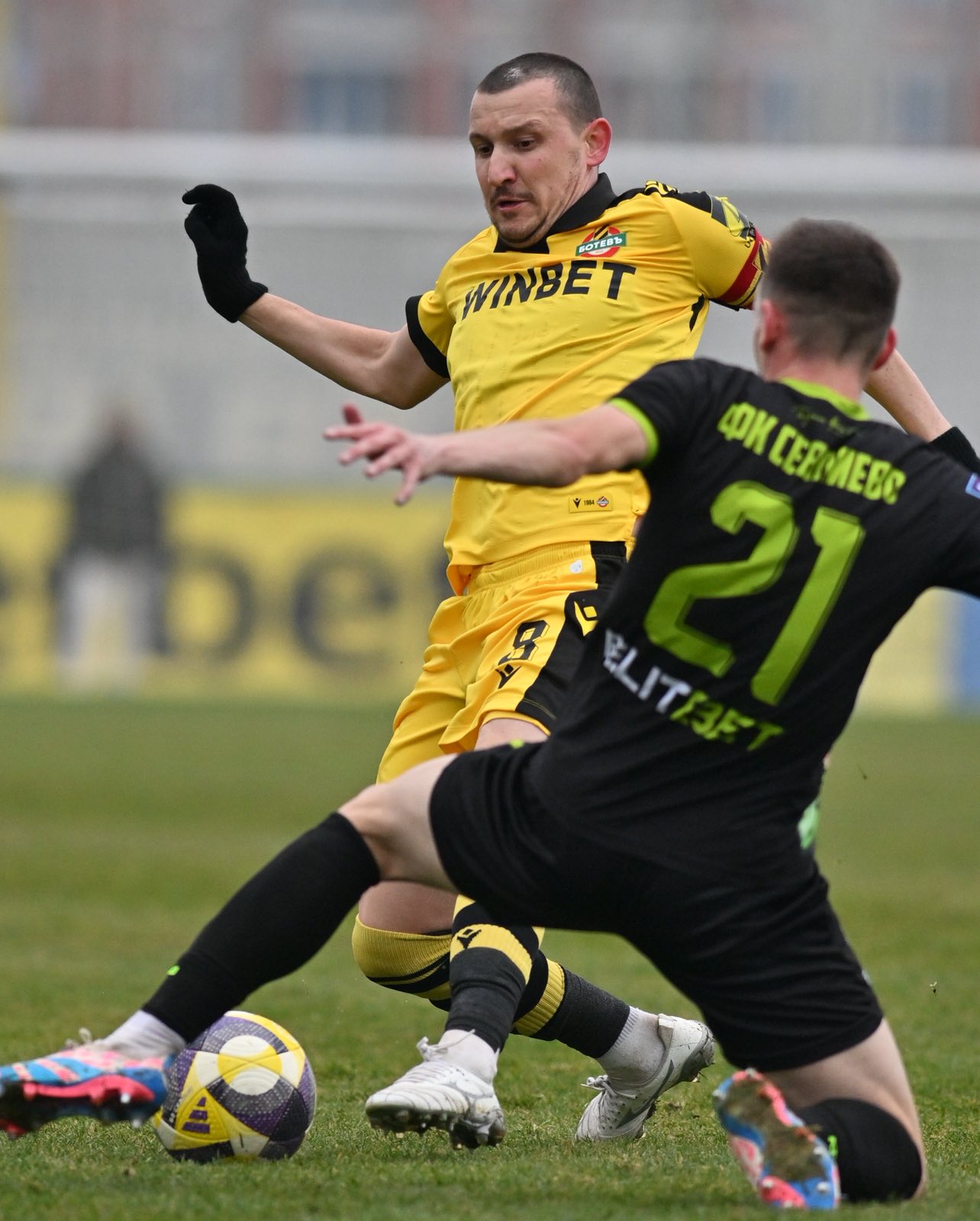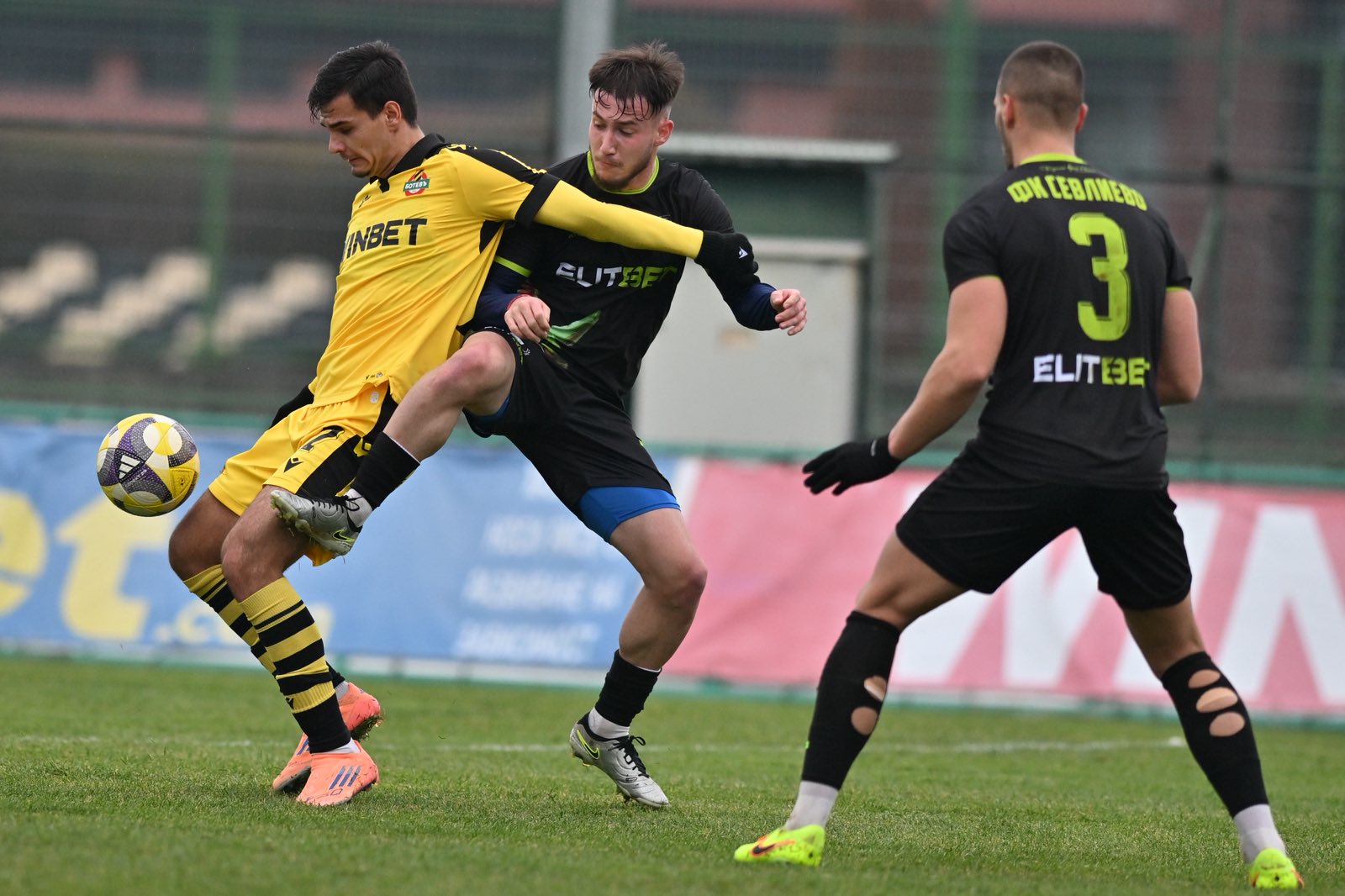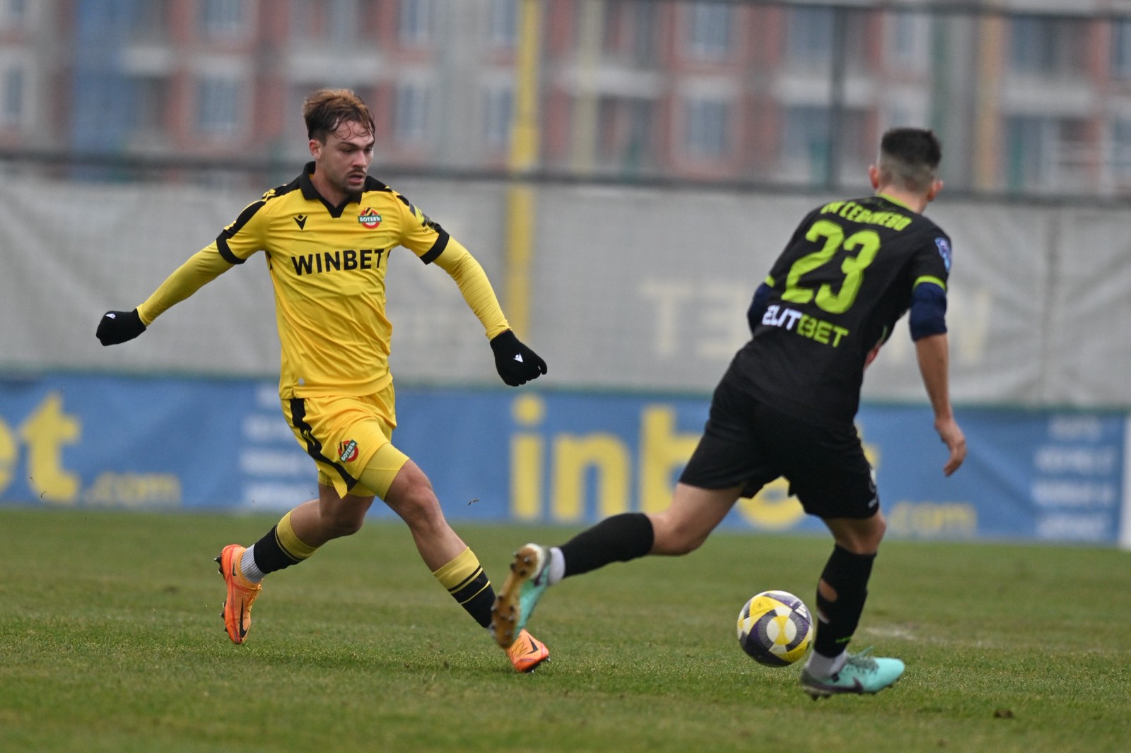 281 Ботев (Пловдив) завърши подготовката си за подновяването на шампионата в efbet Лига с победа с 4:0 над тима на Севлиево в последната си контролна среща. Първата по-интересна ситуация в мача дойде още в 5-ата минута, когато центриране от десния фланг достигна до Закария Тандано. Новият футболист на „жълто-черните“ овладя добре топката, но от изгодна позиция не успя да отправи качествен удар. Гостите можеха да поведат в 14-ата минута. След подаване отдясно Преслав Антонов продължи с глава към Ахмед, който остана сам срещу вратаря. Халфът обаче не успя да се възползва от отличния шанс и стреля неточно. До края на първото полувреме Ботев владееше инициативата, но чистите голови положения липсваха. Два пъти топката влезе във вратата на Севлиево, но и в двата случая попаденията бяха отменени заради засада. След почивката пловдивчани отново изглеждаха по-настоятелни и в 59-ата минута логично стигнаха до откриване на резултата. Никола Илиев отклони с пета пас, предназначен за него, към Педро Игор, който излезе сам срещу вратаря и хладнокръвно реализира за 1:0. Малко след това старши треньорът Димитър Димитров извърши серия от осем промени в състава. Въпреки ротациите, Ботев бързо удвои преднината си. Още при първата атака след подновяването на играта Франклин Маскоте засече на близката греда центриране отдясно и вкара за 2:0. В 85-ата Ерик Маркус след добър пробив отляво намери Константинос Балоянис, който не успя от първия път да засече, но от втория се разписа за 3:0. В самия край на мача отново Балоянис оформи крайното 4:0. Може да ви хареса също Лора Христова и Милена Тодорова с добро представяне в масовия старт на 12,5 км на Зимните игри в Милано-Кортина Пловдивчанин с европейски рекорд в клека и златни медали за страната от шампионата във Финландия Много спорт и мачове по ТВ днес Каталин Иту все по- близо до Левски