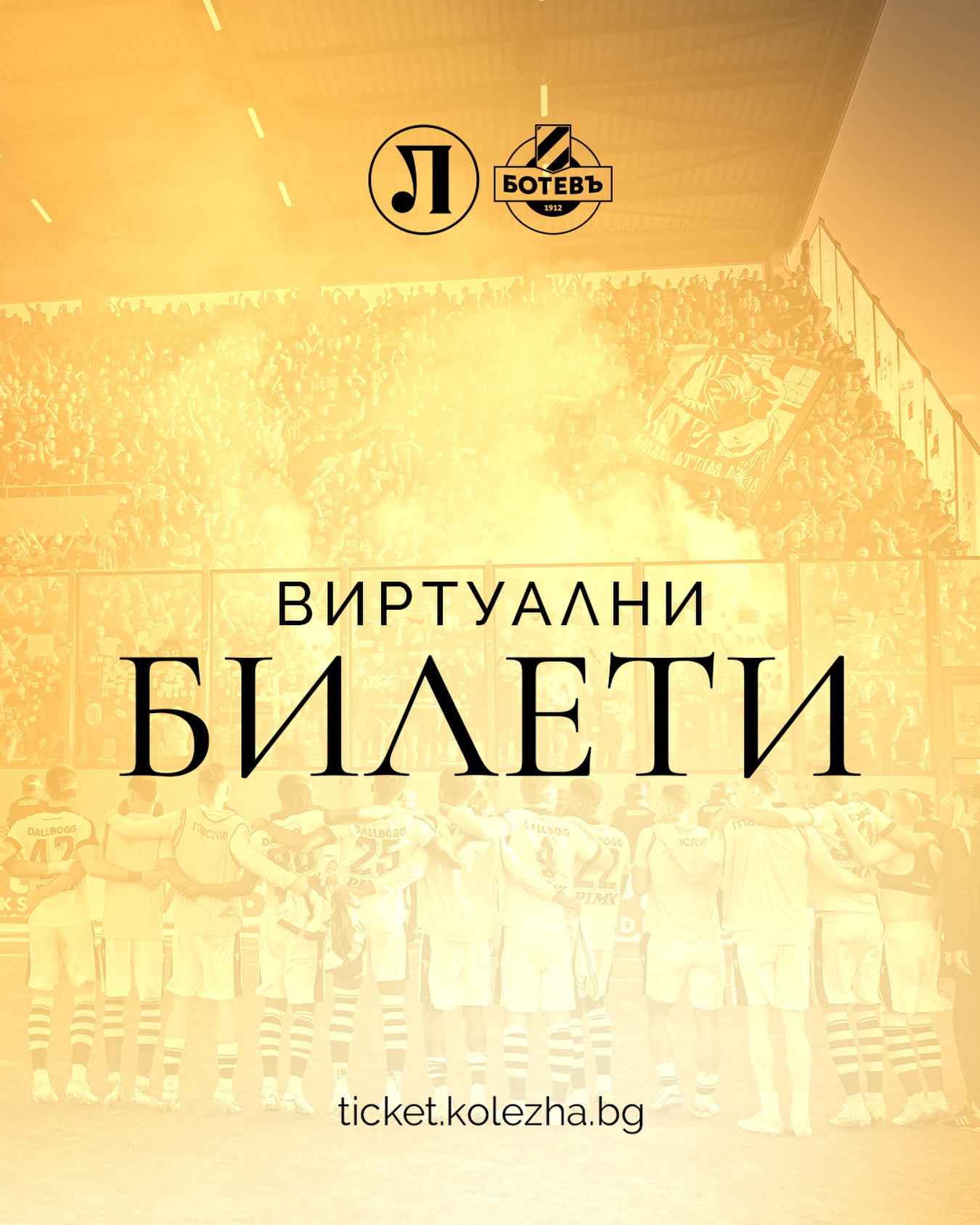 182 Ботев пусна виртуални билети за мача с Локо. Ето какво съобщиха жълто- черните: Ботевисти, Поради ограничения брой предоставени билети и огромния интерес от желаещи да подкрепят отбора в градското дерби с Локомотив, много от вас няма могат да бъдат на стадиона. Но това не означава, че няма да бъдете с отбора. Това е вашият начин да покажете съпричастност, подкрепа и ясно да заявите кой е отборът на Пловдив. ПФК Ботев Пловдив обявява кампания за закупуване на ВИРТУАЛНИ БИЛЕТИ за дербито с Локомотив Пловдив. Билетите са налични онлайн на kolezha.bg и във фен магазина на “Колежа”. Цена на виртуалния билет: 10 евро Краен срок: 12.02 до 15:00 часа Всички събрани средства – 100% – ще бъдат предоставени като премия на треньорския щаб и футболистите при класиране за полуфинал. Кампанията се провежда под наслов: „Ботев ще прегъне. Ще прегърне купата!“ Не всички от вас ще могат да са на трибуните, но ще бъдете заедно с нашите момчета. Всеки виртуален билет е подкрепа. Всеки виртуален билет е уважение. Всеки виртуален билет е вяра. Ботев не е просто клуб. Ботев е кауза. Ботев е Пловдив. Може да ви хареса също Пловдивчанин с европейски рекорд в клека и златни медали за страната от шампионата във Финландия Много спорт и мачове по ТВ днес Каталин Иту все по- близо до Левски Спортът и мачовете по телевизията днес