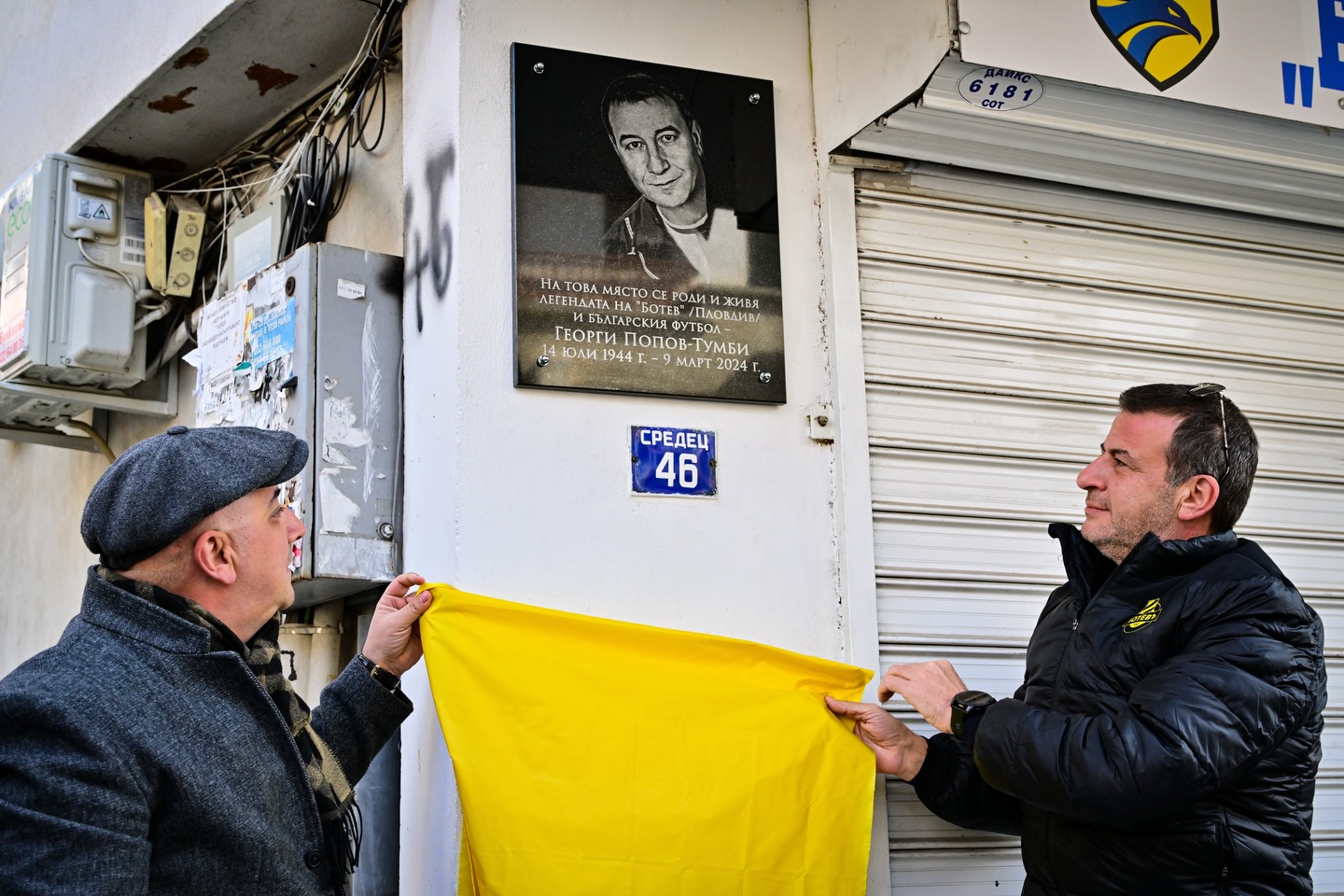 19 Паметна плоча в чест на великия футболист Георги Попов – Тумби бе открита пред дома му на улица „Средец“ №46 в Пловдив. Почит към легендарния играч на Ботев Пловдив отдадоха футболисти от представителния отбор на „канарчетата“, както и ръководството на клуба. На церемонията присъстваха още легенди на най-стария футболен клуб в България, представители на Сдружение ПФК Ботев, както и ръководни фигури от Българския футболен съюз. Своите спомени за времената на един от най-изявените пловдивски футболисти споделиха Петър Зехтински, Костадин Костадинов, както и редица от присъстващите. Поклон, легендо! Може да ви хареса също Трети час продължава операцията на Малена Замфирова Спортът по телевизията днес Иво Паргов се саморазправи с Велислав Вуцов Поправителен изпит на Герена за Левски и Локо Пд