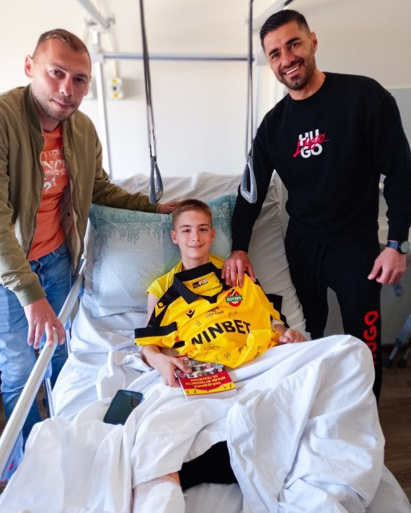 136 Ботев Пловдив е много повече от клуб – Ботев Пловдив е семейство! Юношата на клуба Мартин Стоянов получи тежка контузия по време на турнир в Трявна. 13-годишният талант е с фрактура на крака и бе подложен на оперативна интервенция. В днешния ден младият халф бе посетен от старши треньора Лъчезар Балтанов и неговия помощник Атанас Любенов. Двамата вдъхнаха кураж на малкия ботевист и му пожелаха бързо възстановяване! Може да ви хареса също Кабаков пред второ сериозно наказание в рамките на сезона Още три големи имена се присъединяват към Мача на надеждата Сняг изненада шофьорите на прохода Шипка Спортът и мачовете по телевизията днес