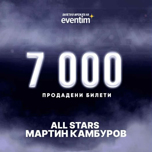 1,4K Над 7 000 продадени билети за ELITBET ALL STARS МАРТИН КАМБУРОВ. ОСТАВА ЛИМИТИРАН БРОЙ БИЛЕТИ! КАСИТЕ НА СТАДИОН „ЛОКОМОТИВ“ РАБОТЯТ В МОМЕНТА! Не изпускай шанса да станеш част от мачът на годината! ПРОГРАМА: 12:00 Отварят вратите на комплекса 13:00 – 16:30 СЕТ НА DJ PEPPOU 14:00 – 16:00 – детски празник 16:30 СТАРТ НА СЪБИТИЕТО ALL STARS МАРТИН КАМБУРОВ 17:00 НАЧАЛО НА ДВУБОЯ Може да ви хареса също Ботев предложи нов договор на Константинос Балоянис Жестоко наказание за Душан Керкез в Гърция Първата крачка към титлата е направена: Марица надигра Левски в първия двубой от финалния плейоф Григор Димитров: Нямам какво да доказвам на никого