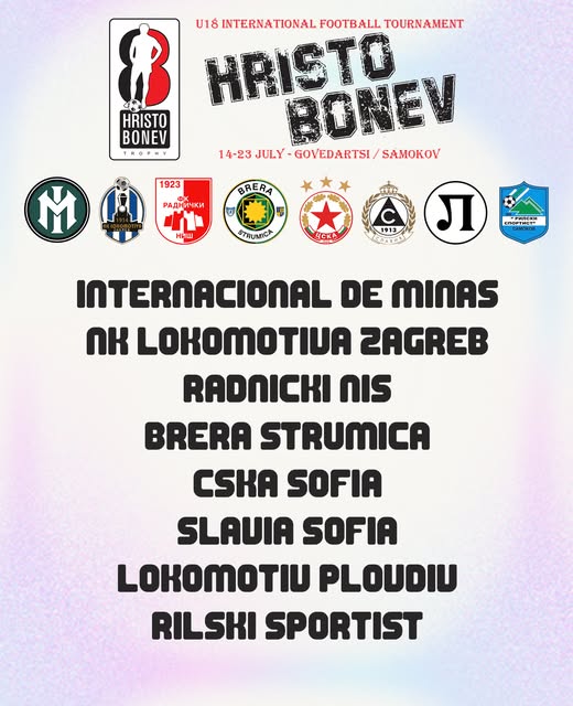 1,7K Ясни са участниците в четвъртото издание на международния юношески турнир под егидата на легендата на Локомотив и България Христо Бонев. Надпреварата за набор 2008 ще се проведе от 14 до 23 юли в Самоков и Говедарци. Осем отбора от общо 5 страни ще се борят за първото място! Списък с участниците: 🇧🇷 Интернасионал де Минас 🇭🇷 Локомотив Загреб 🇷🇸 Раднички Ниш 🇲🇰 Брера Струмица 🇧🇬 ЦСКА София 🇧🇬 Славия София 🇧🇬 Локомотив Пловдив 🇧🇬 Рилски спортист Може да ви хареса също Ботев предложи нов договор на Константинос Балоянис Жестоко наказание за Душан Керкез в Гърция Първата крачка към титлата е направена: Марица надигра Левски в първия двубой от финалния плейоф Григор Димитров: Нямам какво да доказвам на никого