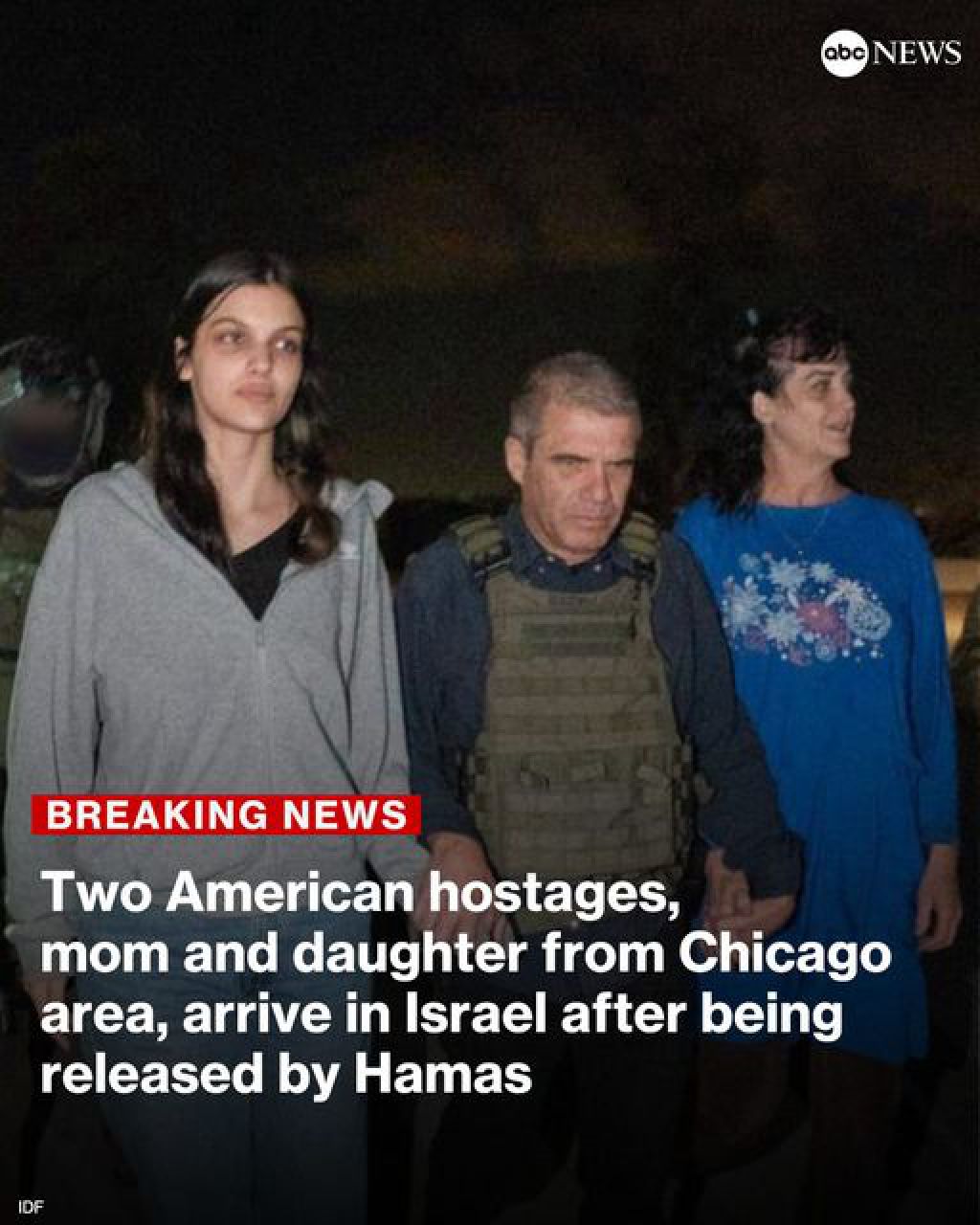 152 Израелското правителство разпространи първата снимка на освободените от „Хамас” двама заложници. Американките Джудит Тай Раанан и Натали Шошана Раанан, които са майка и същеря, бяха пуснати на свобода две седмици след похищението им при атаката на терористичната групировка срещу Израел. На кадъра, публикуван от големите световни агенции, се виждат двете жени, придружавани от израелски военни. Радостната вест за спасението им беше потвърдена и от Белия дом. Американският президент Джо Байдън е провел телефонен разговор с Джудит и Натали, съобщава „Дойче веле“, цитирани от Nova. Те са откарани към сборен пункт във военен лагер в центъра на страната, където ги очакват техни близки. Според официална информация на израелските власти в плен на „Хамас” остават още около 200 души. Може да ви хареса също ЕК: Може да възникнат проблеми с доставките на авиационно гориво Доналд Тръмп изтри публикация, изобразяваща го като Исус Петролът поевтинява в азиатската търговия Унгария официално е определена от Москва като неприятелска държава